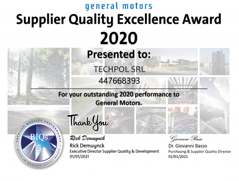 For the third time (the first award was in 2015, the second in 2019) Techpol receives the “GM SUPPLIER QUALITY EXCELLENCE AWARDS” from General Motors.